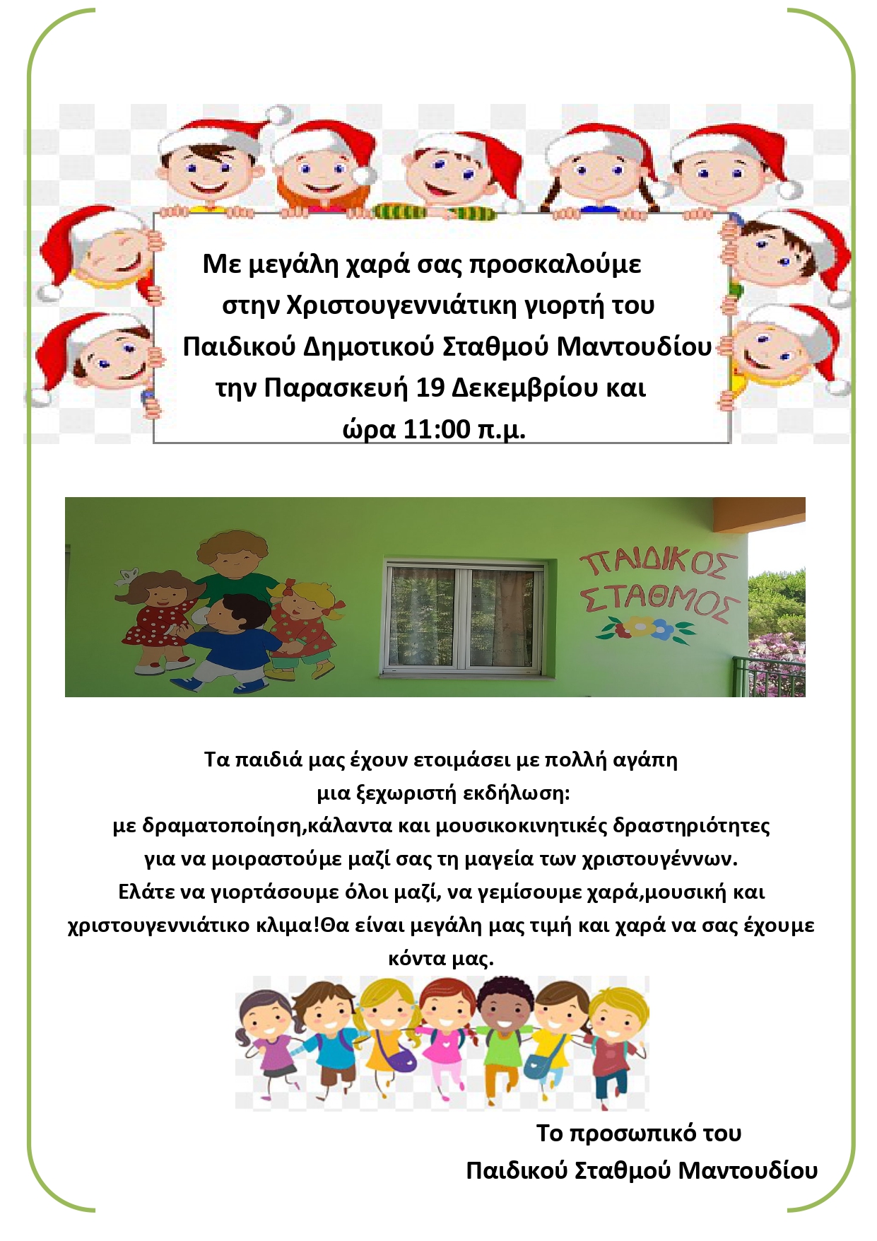 Ο Δήμος Μαντουδίου – Λίμνης – Αγίας Άννας συμμετέχει και φέτος στο Πρόγραμμα Προσχολικής Αγωγής και Δημιουργικής Απασχόλησης Παιδιών για την περίοδο 2025–2026, στο πλαίσιο των Περιφερειακών Προγραμμάτων 2021–2027.